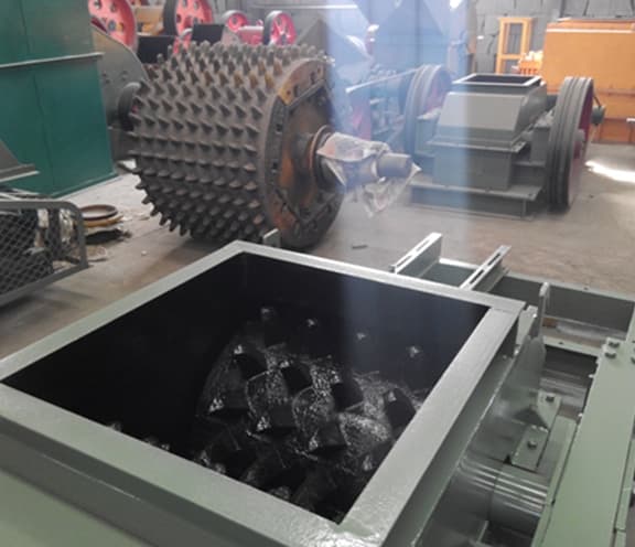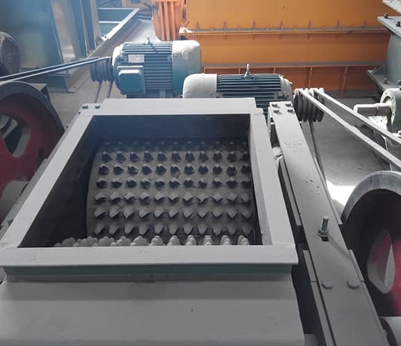 Les deux ensembles  ; d'arbres à rouleaux entraînés individuellement sont utilisés pour broyer le matériau grâce à la force de broyage et à la force de cisaillement générées par  ; la rotation relative. Après avoir pénétré dans la chambre de broyage, le matériau est soumis à la force de l'arbre à rouleaux en rotation et forcé de passer entre les deux rouleaux. En même temps, le matériau commence à être brisé par l'écrasement et le cisaillement de l'arbre du rouleau. Les petites particules brisées se déplacent le long de la tangente du rouleau de rotation et sont projetées sous la machine à travers l'espace entre les deux rouleaux.
